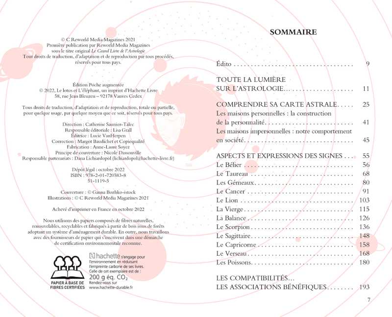 Pour chaque signe vous découvrirez son caractère, ses relations amoureuses, son rapport au travail et à l’argent, sa santé, ses tourments, ses qualités et défauts, les clés de son équilibre, sa spécificité pour les enfants mais aussi toutes les compatibilités entre les signes.