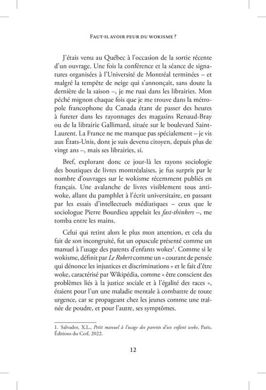 Un essai intelligent et objectif dans un océan de malhonnêteté intellectuelle, ainsi qu’une invitation à réfléchir et à remettre en question quelques lieux communs, mais également nos propres préjugés.