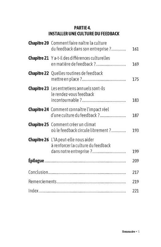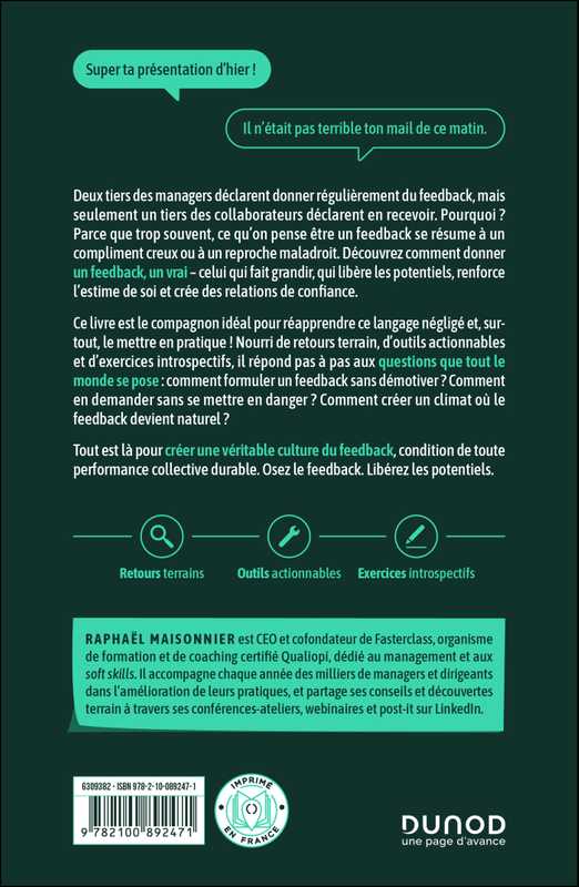 Ce livre est le compagnon idéal pour réapprendre ce langage négligé et, surtout, le mettre en pratique ! Nourri de retours terrain, d’outils actionnables et d’exercices introspectifs, il répond pas à pas aux questions que tout le monde se pose : comment formuler un feedback sans démotiver ? Comment en demander sans se mettre en danger ? Comment créer un climat où le feedback devient naturel ?