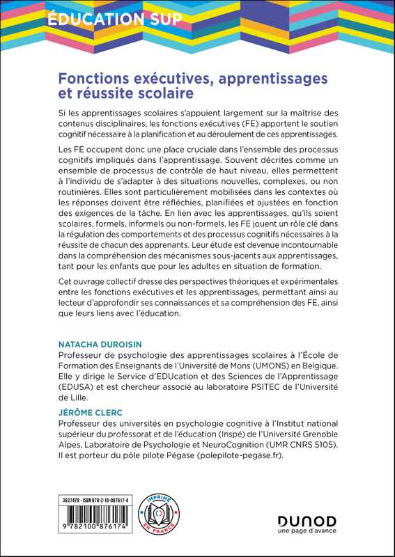 Le rôle-clé des fonctions exécutives dans les apprentissages et la réussite scolaire n'est plus à démontrer. Alors que les recherches menées en psychologie cognitive et en neuropsychologie permettent aujourd’hui de mieux comprendre les mécanismes (neuro)cognitifs qui soutiennent les fonctions exécutives, des questionnements subsistent. Parmi ceux-ci, on peut citer les suivants : Comment les fonctions exécutives soutiennent-elles les apprentissages ? Quels outils utiliser pour évaluer de manière précise les fonctions exécutives et leur développement ? Quels facteurs de l’environnement scolaire et familial contribuent le plus à l’hétérogénéité du développement de ces fonctions ? Qu’en est-il du lien entre fonctions exécutives et apprentissages chez des enfants au développement atypique ?