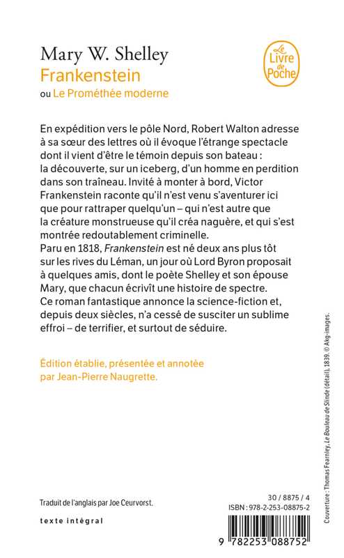 Paru en 1818, Frankenstein est né deux ans plus tôt sur les bords du Léman, un jour où Lord Byron proposait à quelques amis, dont le poète Shelley et son épouse Mary, que chacun écrivît une histoire de spectre. Ce roman fantastique annonce la science-fiction et, depuis près de deux siècles, n’a cessé de susciter un sublime effroi – de terrifier, donc, mais surtout de séduire.