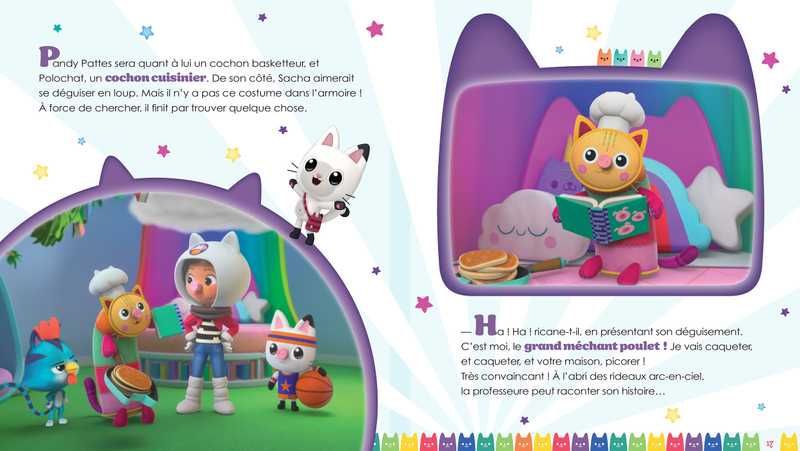 Bienvenue à l'école des chats ! Pour leur première journée, Gabby et Pandy Pattes ont un emploi du temps bien chargé : cours de musique avec le professeur DJ Miaou, séance de sport avec l'entraîneur Sacha... Accompagne-les dans toutes leurs activités !