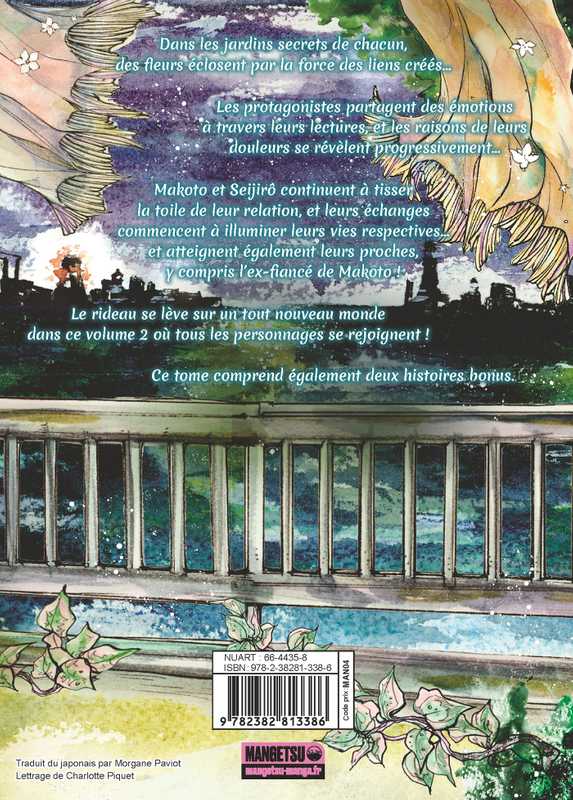 Dans les jardins secrets de chacun, des fleurs éclosent par la force des liens créés... Les protagonistes partagent des émotions à travers leurs lectures, et les raisons de leurs douleurs se révèlent progressivement... Makoto et Seijirô continuent à tisser la toile de leur relation, et leurs échanges commencent à illuminer leurs vies respectives... et atteignent également leurs proches, y compris l'ex-fiancé de Makoto !