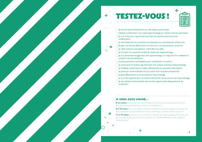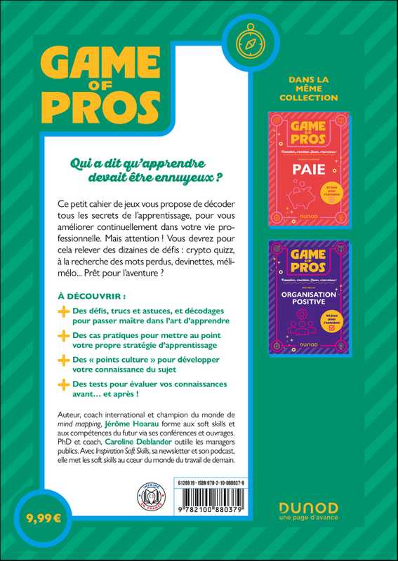 Ce petit cahier de jeux vous propose ainsi de décoder les tenants et les aboutissants de l’apprentissage. Mais attention, vous devrez pour cela percer certains mystères : mots codés, mots croisés, casse-tête, anagrammes, quiz, textes à trous... Alors, prêt à relever les défis ?