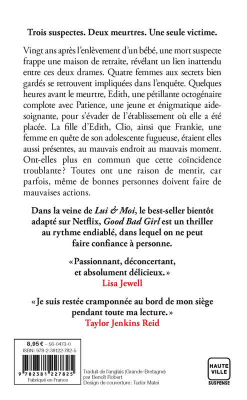 Lorsqu'une nouvelle mort suspecte frappe l'établissement, Patience, Edith, Clio et Frankie, une femme en quête de sa fille fugueuse, toutes présentes lors des faits, se retrouvent mêlées à l'enquête. Elles ont toutes une raison de mentir. Car parfois, de bonnes personnes font de mauvaises actions...