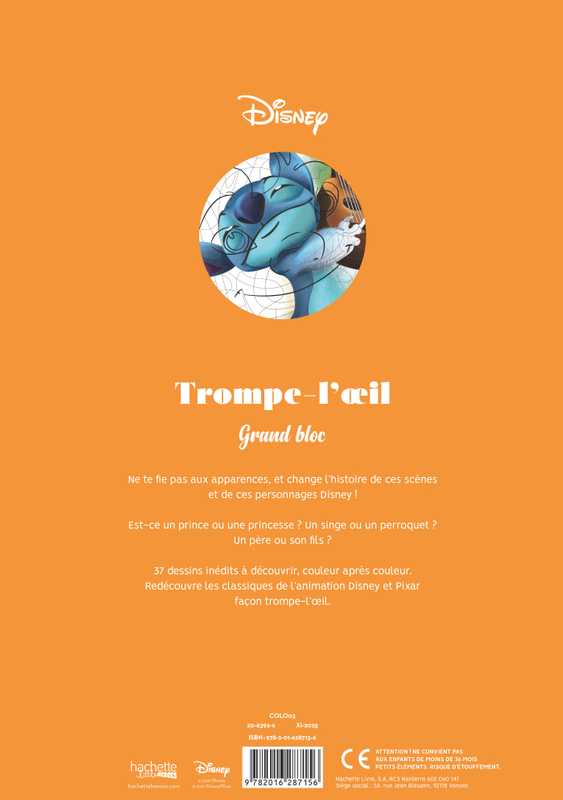 Des dessins inédits à découvrir, couleur après couleur. Redécouvrez les classiques de l’animation Disney et Pixar façon trompe-l’œil.