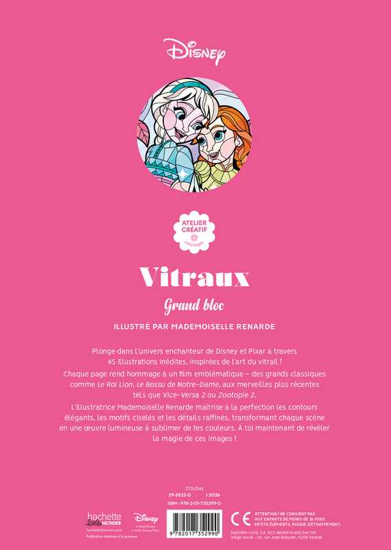 Plonge dans l’univers enchanteur de Disney et Pixar à travers une collection de 45 illustrations inédites, inspirées de l’art du vitrail !