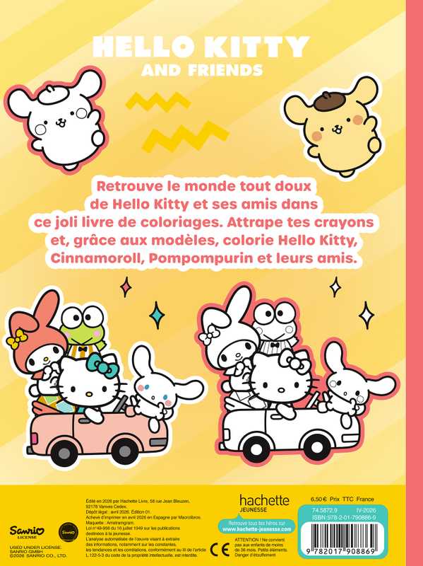 Venez retrouver et colorier Hello Kitty, Cinnamoroll, Pompompurin, Kuromi et les autres dans ce beau livre de coloriages !