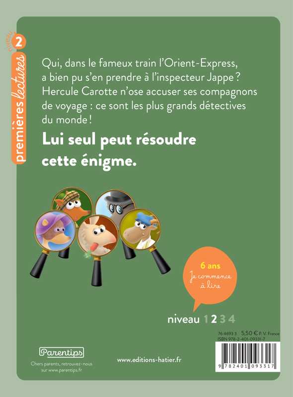 Les plus grands détectives du monde se rejoignent à bord de l’Orient-Express pour se rendre à leur réunion annuelle. Bien sûr, Hercule Carotte et Eusèbe sont du voyage. Mais à peine le train a-t-il démarré qu’on retrouve l’inspecteur Jappe… assommé ! Qui a bien pu s’en prendre au célèbre policier ?