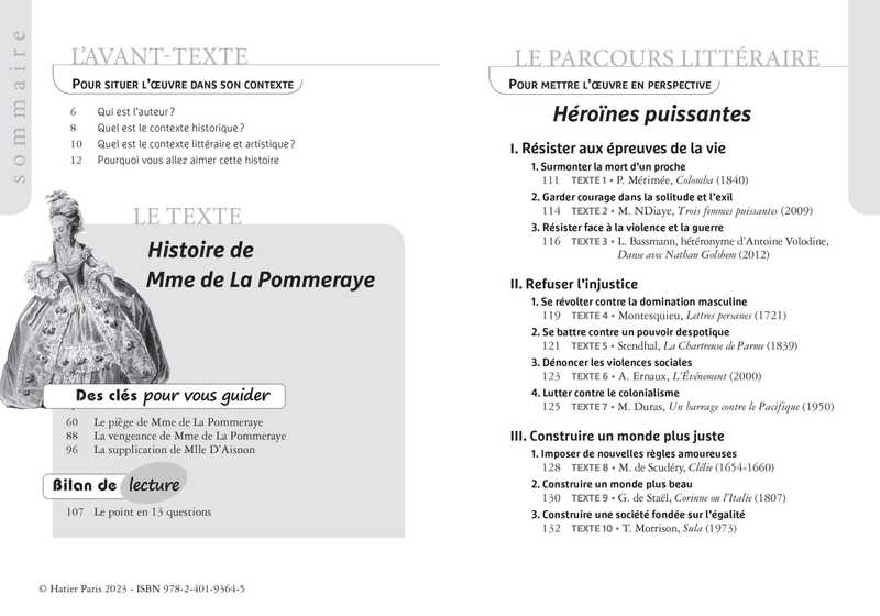 En complément de ce récit, un groupement problématisé de 10 extraits de romans (de Madeleine de Scudéry à Marie NDiaye), qui permet de confronter Mme de la Pommeraye à d’autres héroïnes puissantes et d’analyser leur capacité à surmonter les épreuves, à se battre contre l’oppression ou à construire un monde nouveau.