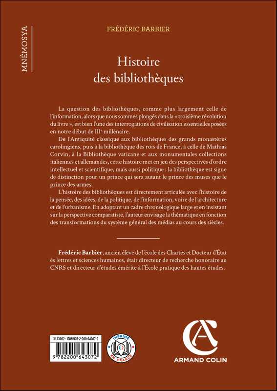 De l’Antiquité classique aux bibliothèques des grands monastères carolingiens, puis à la bibliothèque des rois de France, à celle de Mathias Corvin, à la Bibliothèque vaticane et aux monumentales collections italiennes et allemandes, cette histoire met en jeu des perspectives d’ordre intellectuel et scientifique, mais aussi politique : la bibliothèque est signe de distinction pour un prince qui sera autant le prince des muses que le prince des armes.