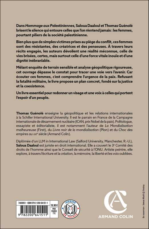 Dans Hommage aux Palestiniennes, Saloua Daaloul et Thomas Guénolé brisent le silence qui entoure celles que l’on n’entend jamais : les femmes, pourtant piliers de la société palestinienne.