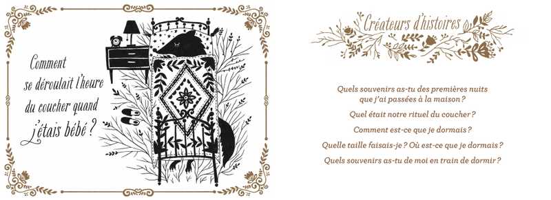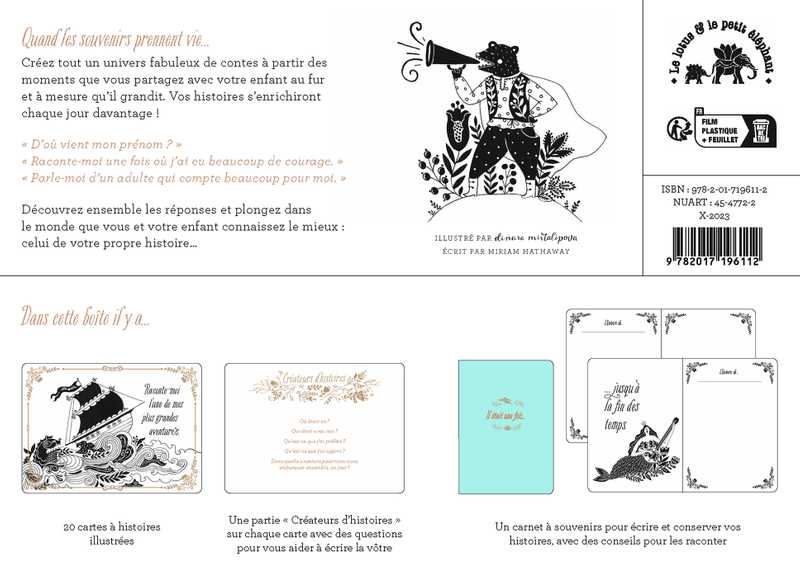 - Un carnet à souvenirs pour écrire et conserver vos histoires, avec des conseils pour les raconter.