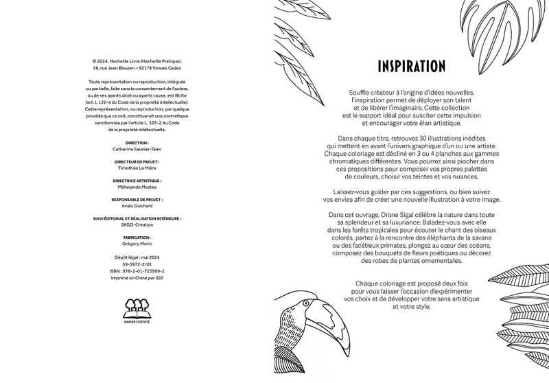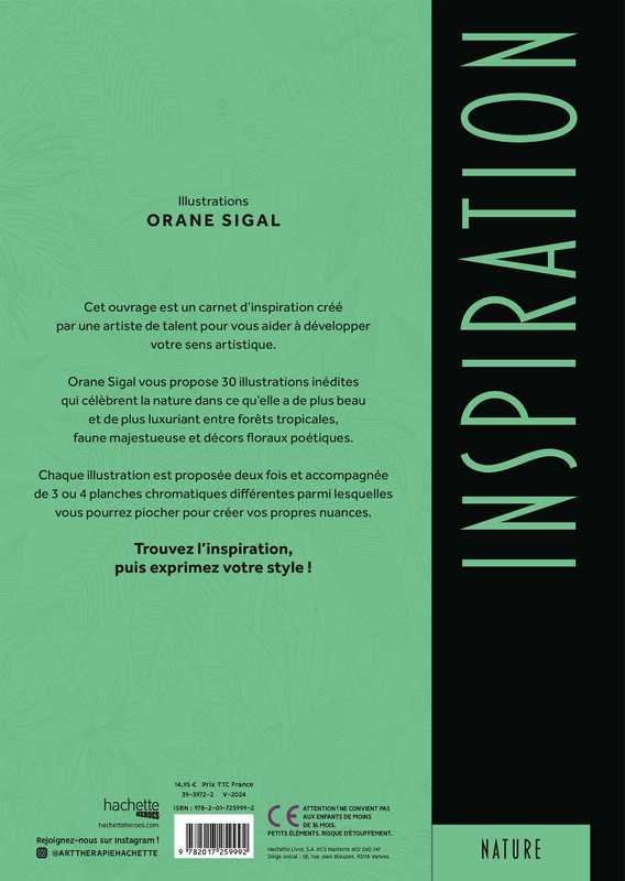 Orane Sigal vous offre 30 illustrations inédites qui célèbrent la nature dans ce qu’elle a de plus beau et de plus luxuriant entre forêts tropicales, faune majestueuse et décors floraux poétiques.