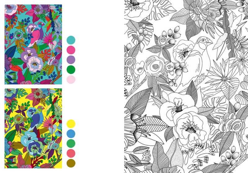 Chaque coloriage est proposé 2 fois et décliné en 4 planches aux gammes chromatiques différentes, pour vous laisser l’occasion d’expérimenter vos choix et créer une illustration à votre image.