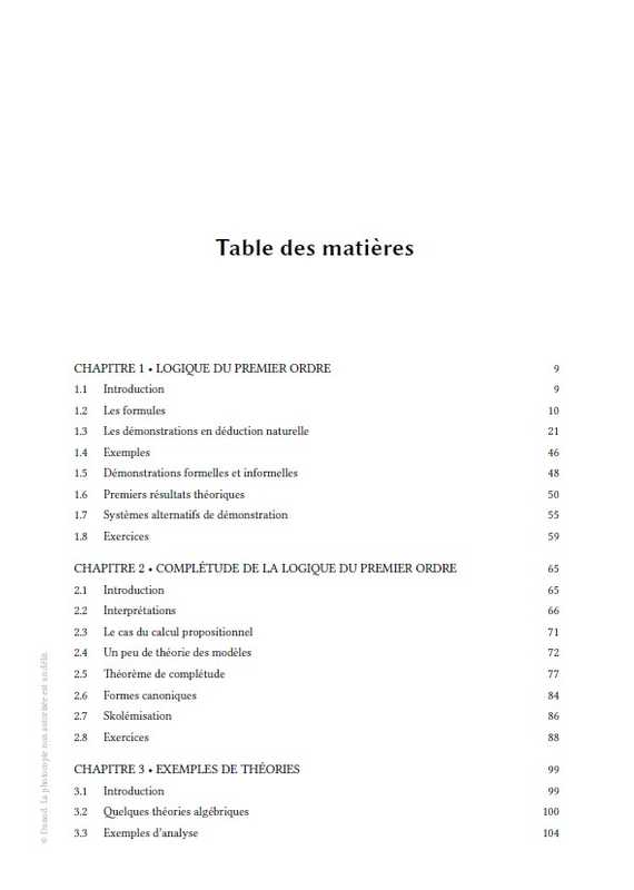 Pour accompagner le lecteur dans sa progression, le cours contient de nombreux exemples et plus de 190 exercices corrigés. Une annexe présente un assistant de démonstration, le logiciel PhoX, développé par l’un des auteurs et utilisable en ligne. Des compléments aux corrigés (preuves entièrement formalisées avec le logiciel PhoX), ainsi que le logiciel lui-même, sont disponibles sur le site des auteurs. Ce livre, qui ne suppose aucun prérequis en logique, s’adresse plus particulièrement aux étudiants de la licence à la première année de doctorat. Il pourra également intéresser les candidats au CAPES et à l’agrégation.
