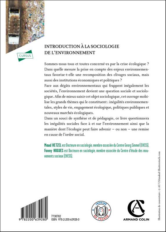 Face aux dégâts environnementaux qui frappent inégalement les sociétés, l'environnement devient une question sociale et sociologique. Afin de mieux saisir cet objet sociologique, cet ouvrage mobilise les grands thèmes qui le constituent : inégalités environnementales, styles de vie, engagement écologique, politiques publiques et nouveaux marchés écologiques.