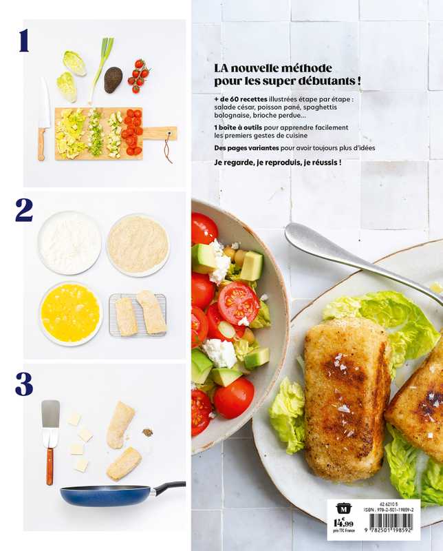 + de 60 recettes illustrées étape par étape : salade césar, poisson pané, spaghettis bolognaise, brioche perdue…