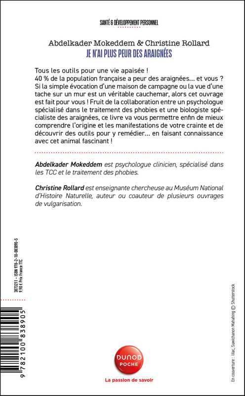 Cet ouvrage va permettre au lecteur de mieux comprendre l’origine et les manifestations de sa crainte, d’avoir des outils TCC pour y remédier dont l’efficacité est validée. Il va corrélativement faire connaissance avec cet animal fascinant.