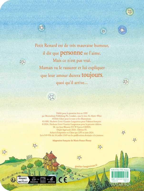 Petit Renard est de très mauvaise humeur. Il dit que personne ne l'aime. Mais ce n'est pas vrai. Maman va le rassurer et lui expliquer que leur amour durera toujours, quoi qu'il arrive...