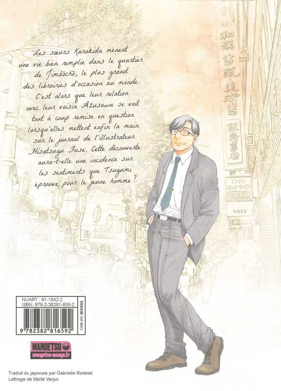 Les soeurs Karakida mènent une vie bien remplie dans le quartier de Jimbocho, le plus grand des librairies d'occasion au monde. C'est alors que leur relation avec leur voisin Azusawa se voit tout à coup remise en question lorsqu'elles mettent enfin la main sur le journal de l'illustrateur Hisatsugu Fuse. Cette découverte aura-t-elle une incidence sur les sentiments que Tsugumi éprouve pour le jeune homme ?