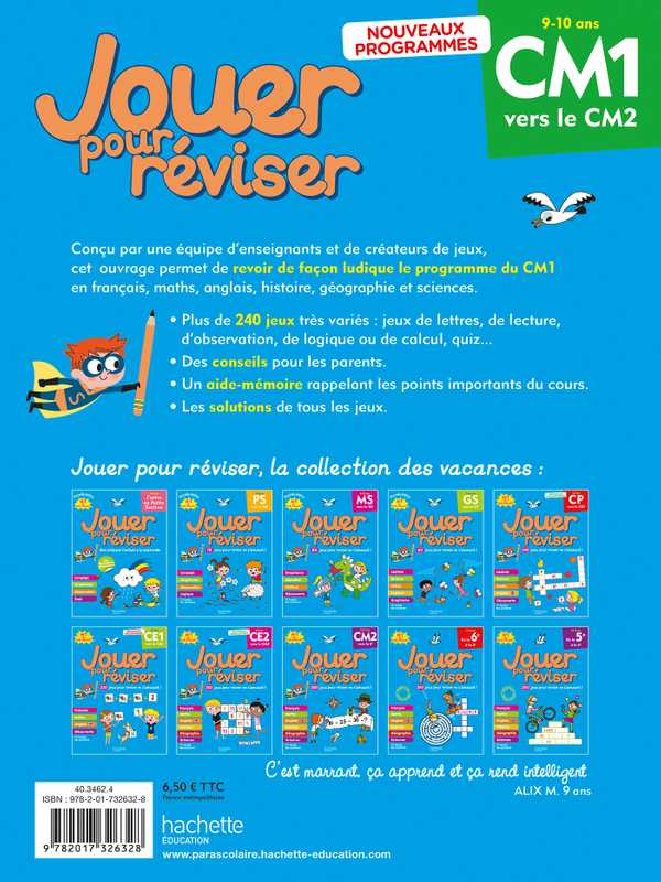 Conçu par une équipe d’enseignants et de créateurs de jeux, cet ouvrage permet de revoir de façon ludique le programme du CM1 en français, maths, histoire, géographie et sciences.