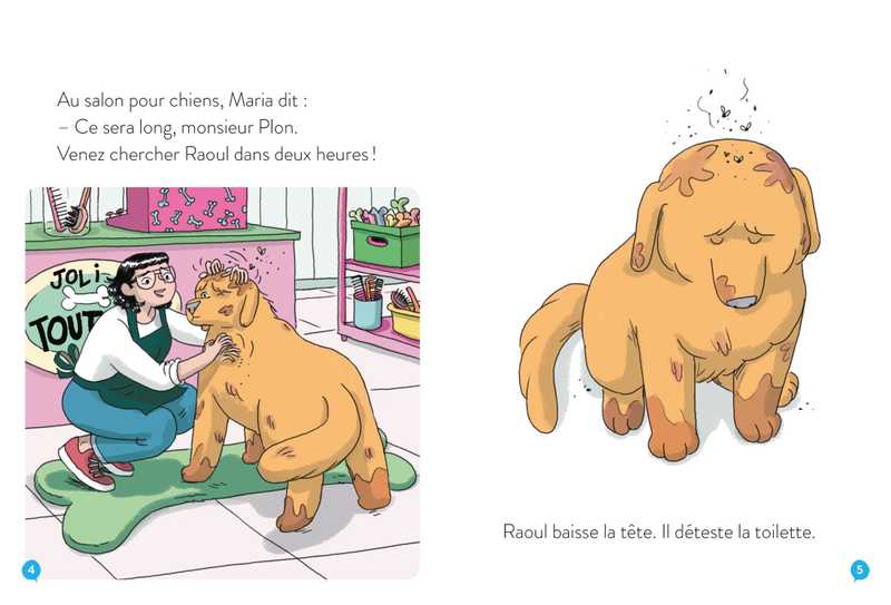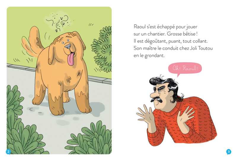 Il est temps pour M. Plon d’emmener Raoul chez la toiletteuse, son chien est vraiment très sale ! Mais Raoul déteste être propre… Dès qu’il a été nettoyé, il file s’amuser : courser le chat du quartier, se rouler dans la boue, manger des saucisses dans une poubelle… Bref, c’est le jour des bêtises !