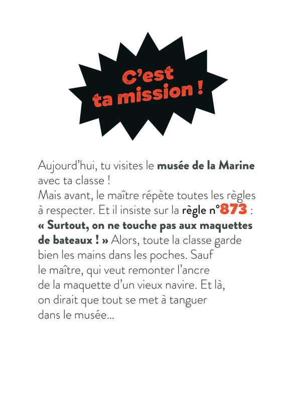 La visite du musée de la Marine avec ta classe a mal tourné : ton maître, qui vous avait pourtant défendu de toucher aux maquettes de bateaux, n'a pas pu résister et vous voilà embarqué sur un bateau pirate. Que va-t-il se passer ? C'est à toi de le décider !