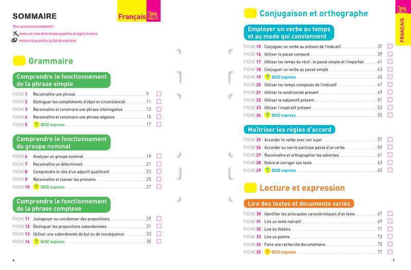 • Dans chacune des trois matières – Français, Maths et Anglais –, sont abordées les notions clés du programme de 5e. Chaque notion est l’objet d’une fiche permettant à la fois de revoir le cours et de s’entraîner à travers des exercices ciblés.