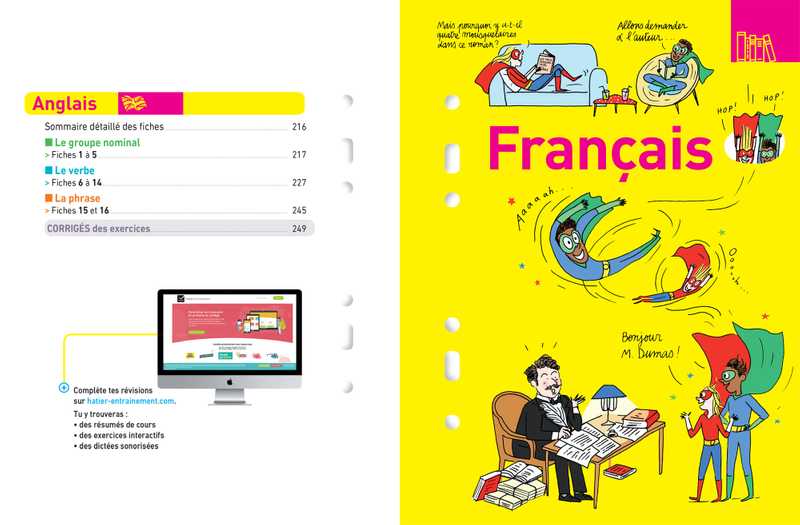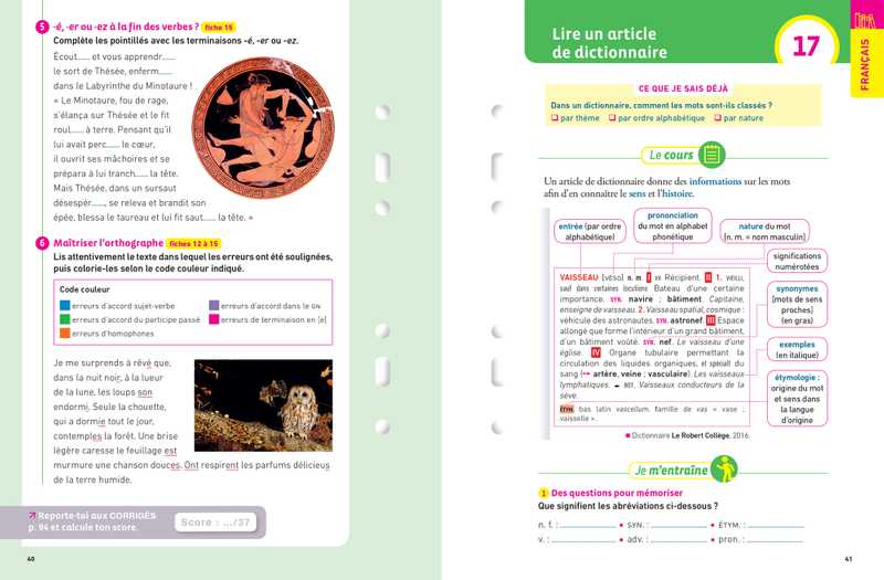 • Dans chacune des trois matières – Français, Maths et Anglais –, sont abordées les notions clés du programme de 6e. Chaque notion est l’objet d’une fiche permettant à la fois de revoir le cours et de s’entraîner à travers des exercices ciblés.