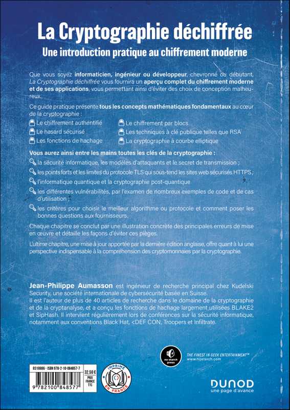 Ce livre s’adresse aux informaticiens, ingénieurs et développeurs, qui cherchent à mieux comprendre la cryptographie pour éviter des choix de conception et d'implémentation malheureux. Praticien chevronné ou débutant désireux de se plonger dans le domaine, La Cryptographie déchiffrée vous fournira un aperçu complet du chiffrement moderne et de ses applications.
