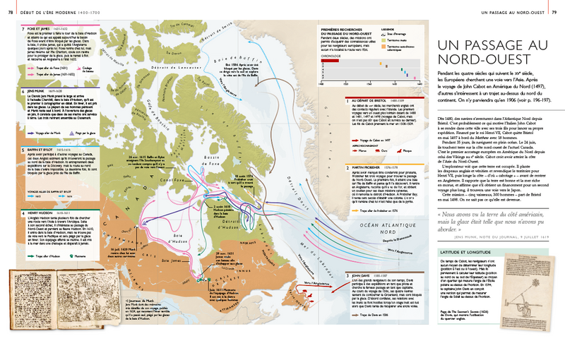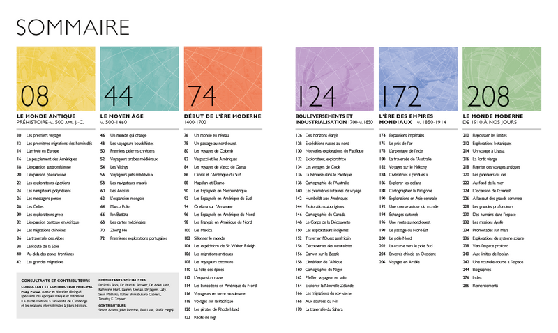 De superbes cartes d’époque, documents d’archives rares et inédits, témoignent de la façon dont, à des époques différentes, on percevait le monde et de l’état des connaissances. De la préhistoire, avec les premières grandes migrations humaines, jusqu’à l’exploration spatiale et ses ambitions actuelles, en passant par l’exploration du Pacifique et la recherche de la source du Nil, ce livre nous entraîne sur les traces des plus grands explorateurs et exploratrices. Il apporte une meilleure compréhension des routes sillonnant le monde, et interroge avec objectivité le sens même de la colonisation.