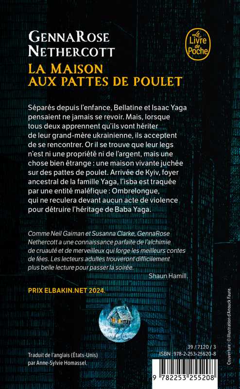 Séparés depuis l’enfance, Bellatine et Isaac Yaga pensaient ne jamais se revoir. Mais, lorsque tous deux apprennent qu’ils vont hériter de leur grand-mère ukrainienne, ils acceptent de se rencontrer. Or il se trouve que leur legs n’est ni une propriété ni de l’argent, mais une chose bien étrange : une maison intelligente juchée sur des pattes de poulet. Arrivée de Kyiv, foyer ancestral de la famille Yaga, l’isba est traquée par une entité maléfique : Ombrelongue, qui ne reculera devant aucun acte de violence pour détruire l’héritage de Baba Yaga.