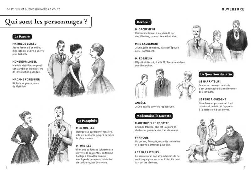 En lien avec l’objet d’étude «  La fiction pour interroger le réel  » du programme de français en 4e, cinq nouvelles (La Parure, Le Parapluie, Décoré !, La Question du latin et Mademoiselle Cocotte) qui nous frappent par leur construction parfaite et leur chute.