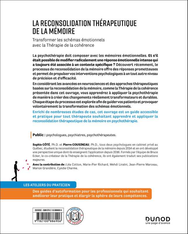 Enrichi de nombreuses études de cas, cet ouvrage est un guide accessible et pratique pour tout thérapeute souhaitant apprendre et appliquer la reconsolidation thérapeutique de la mémoire en psychothérapie.