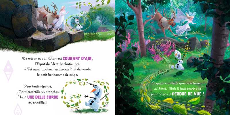 Résumé : Au cours d’une de ses lectures, Olaf découvre un livre avec en couverture une créature qui le fascine : la licorne. Le bonhomme de neige rêve d’en voir une de ses propres yeux ! Aidé de ses amis, il part à la recherche de cet animal fantastique…