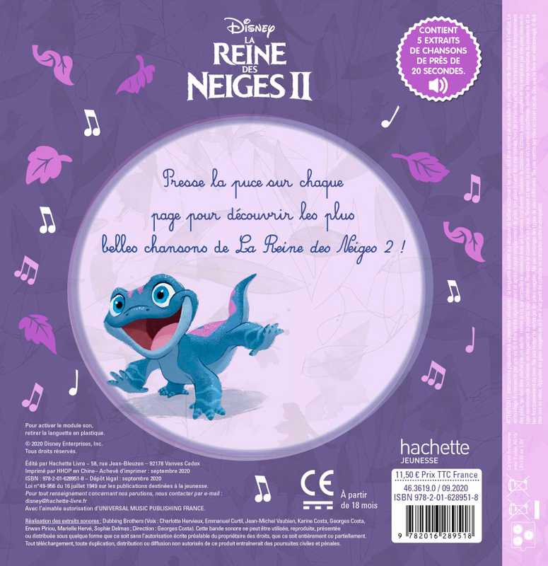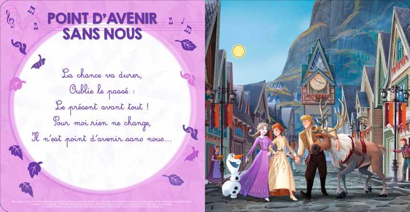 Sur chaque page, l'enfant recherche dans l'illustration le petit bouton qui déclenchera la chanson. Une illustration simple et tendre accompagne chaque chanson mythique de La Reine des Neiges 2 et invite à découvrir l'univers magique du film. En écoutant ou en chantant, l’enfant peut observer les détails de l'image tout en étant autonome.