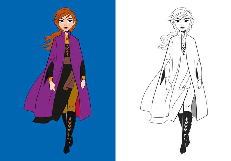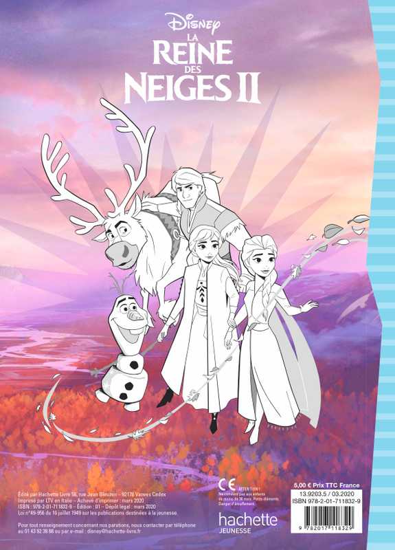 Un grand cahier de près de 90 coloriages des héros La Reine des Neiges 2: sur chaque double page du cahier, une grande illustration des personnages et héros du film à colorier et son modèle en couleur sur la page qui lui fait face. Des illustrations faciles à colorier.