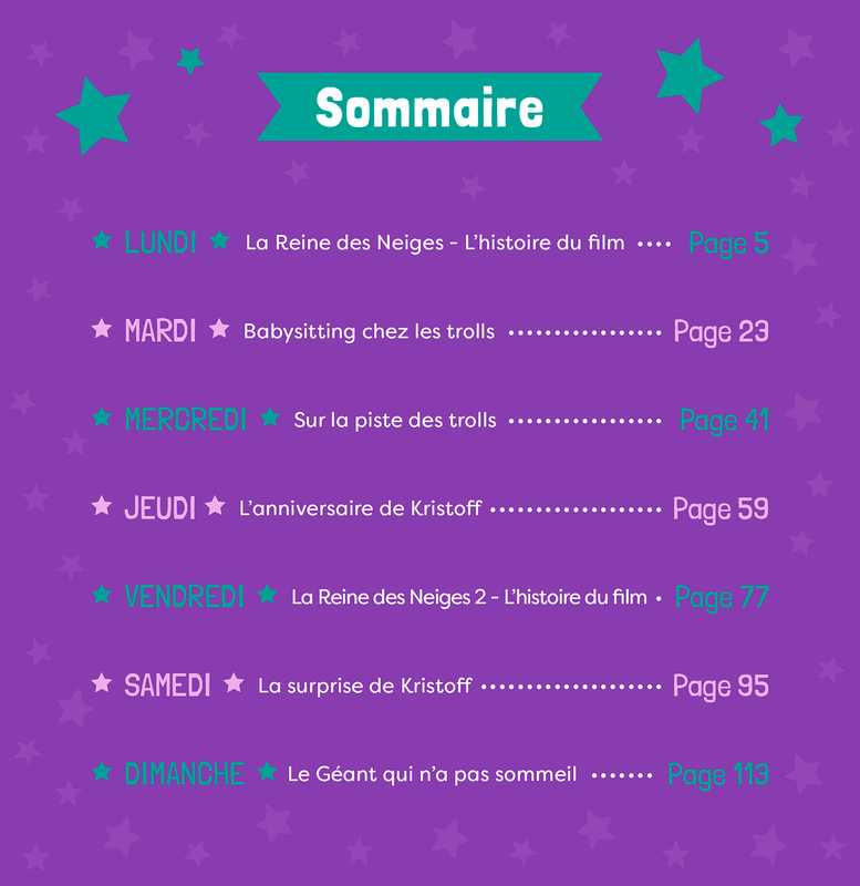 Contient les histoires : La Reine des Neiges – L’histoire du film / Baby-sitting chez les trolls / Sur la piste des trolls / L’Anniversaire de Kristoff / La Reine des Neiges 2 – L’histoire du film / La surprise de Kristoff / Le Géant qui n’a pas sommeil