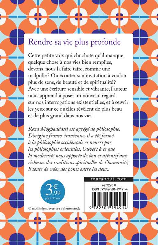 Avec une écriture à la fois sensible et vibrante, l’auteur nous encourage à porter un regard neuf sur nos questions existentielles et à découvrir à travers elles ce qu’il y a de plus beau et de plus grand dans nos vies.