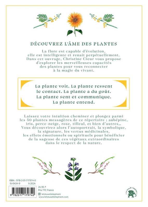 La flore est capable d’évolution, elle est intelligente et renaît perpétuellement. Dans cet ouvrage, Christine Cieur vous propose d'explorer les merveilleurses capacités des plantes pour vous reconnecter à la magie du vivant. La plante voit. La plante ressent le contact. La plante a du goût. La plante sent et communique. La plante entend.