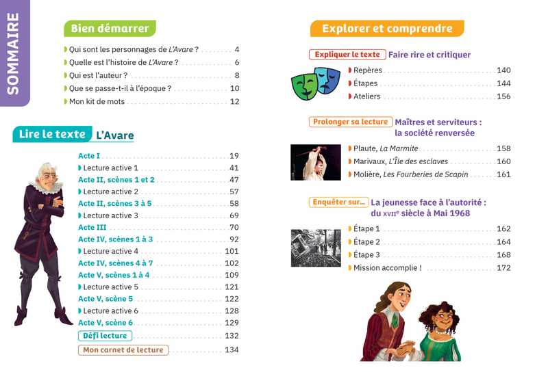 Dans cette célèbre pièce, Molière brosse le portrait féroce d’un avare, en poussant son défaut à l’extrême. L’occasion de livrer une satire de la société du XVIIe siècle en dénonçant notamment l’autorité abusive des pères de famille. Dans une édition enrichie de nombreux outils pédagogiques, en lien avec l’objet d’étude « Expérimenter et jouer au théâtre : la société sens dessus dessous » du nouveau programme de 5e.
