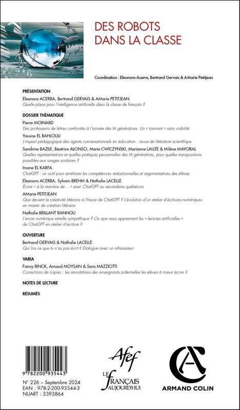La revue Le français aujourd'hui constitue un outil de réflexion et d'actualisation des connaissances sur le fonctionnement de la langue et des discours, sur un auteur ou une approche littéraire, sur des démarches d'enseignement-apprentissage novatrices. Chaque numéro regroupe, autour d'une thématique, des contributions qui s'appuient sur les données des recherches en sciences humaines, et plus particulièrement en sciences du langage et en didactique des langues et des textes, ainsi que sur des expériences concrètes, menées dans les différentes classes où le français est enseigné ou utilisé.