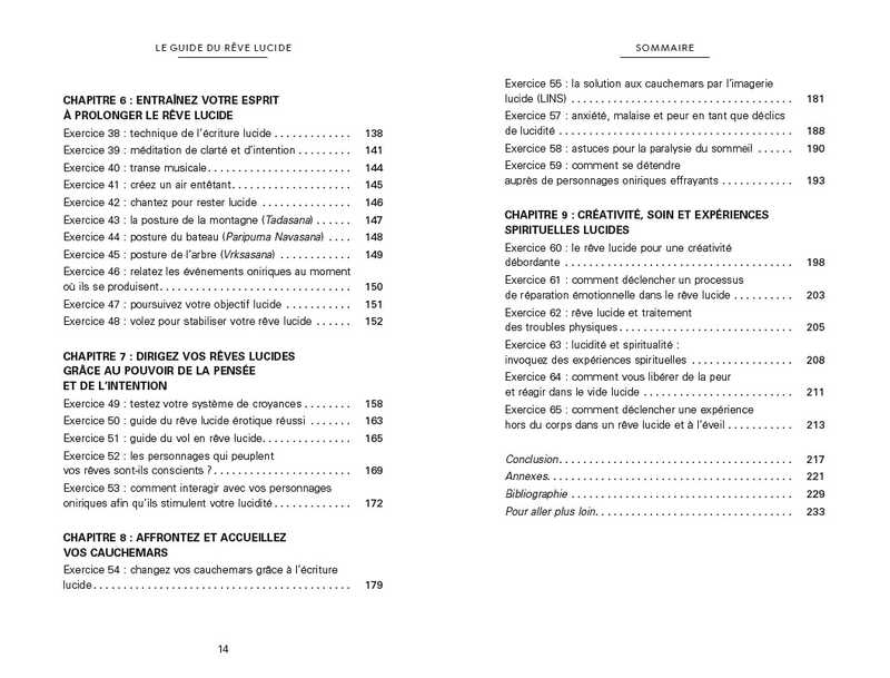Avec plus de 60 exercices et 15 programmes sur mesure, ce guide complet vous apprendra à devenir lucide au cours de vos rêves et à en prendre le contrôle. À la clé, la transformation de votre sommeil en une aventure spirituelle passionnante !