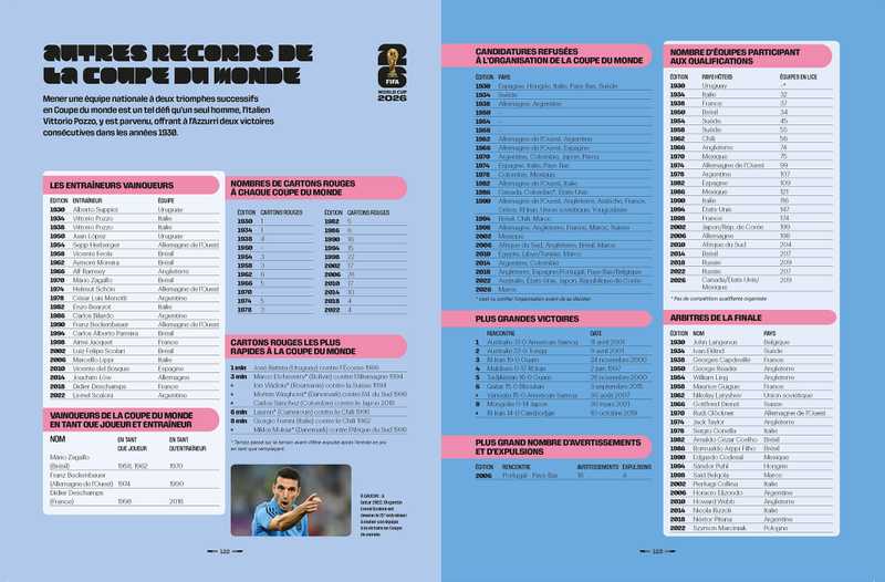 Cet ouvrage qui ravira les fans réunit des analyses d'experts sur les 48 équipes, leurs chances d'arriver en finale et leurs joueurs vedettes, ainsi que des statistiques et des records de la Coupe du Monde.