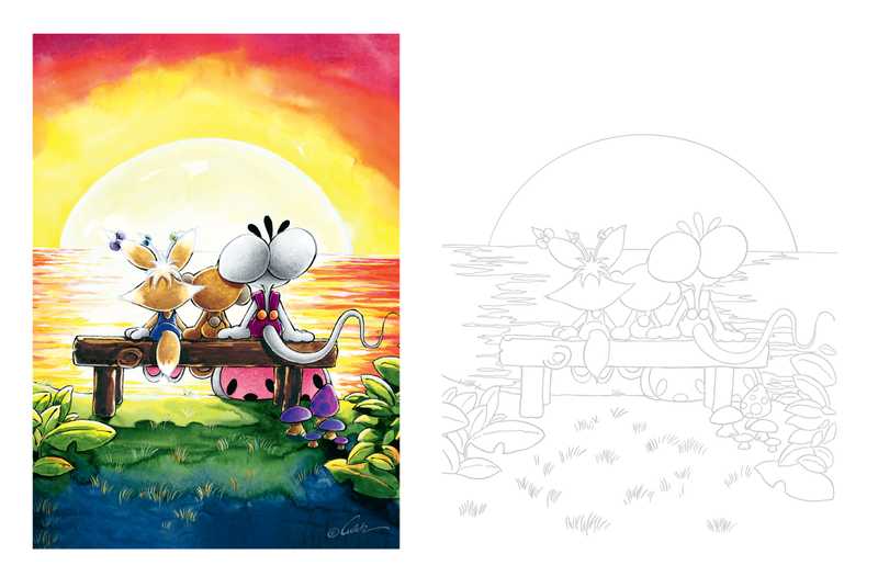 Chaque page est prédécoupée et imprimée sur du papier aquarelle 180 grammes pour faciliter la mise en couleurs.