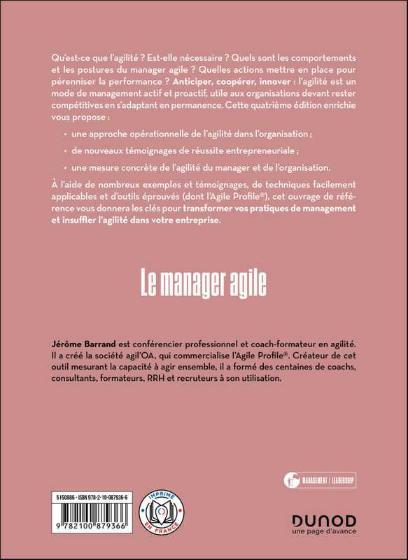 Avec de nombreux exemples, des techniques facilement applicables et des outils éprouvés (dont l’Agile Profile®), cet ouvrage de référence vous donnera les clés pour devenir un manager agile et insuffler l’agilité dans votre entreprise.