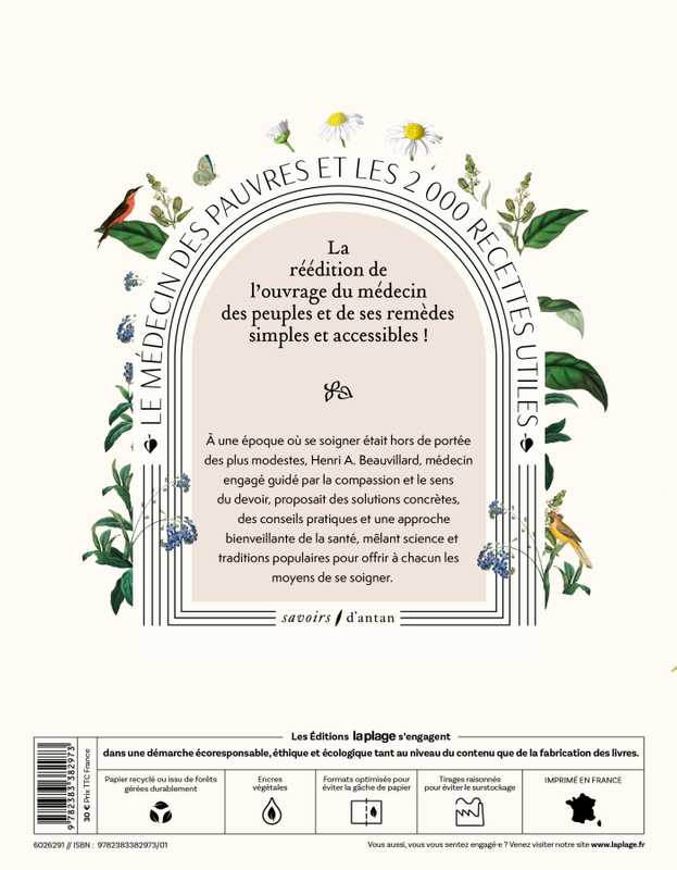 À une époque où se soigner était hors de portée des plus modestes, le Dr Beauvillard se lance dans l’écriture d’un livre destiné à transmettre les clés d’une santé accessible, grâce à des ressources simples, naturelles et à portée de tous. En proposant des solutions concrètes, des conseils pratiques, cet ouvrage propose une approche bienveillante de la santé, mêlant science et traditions.