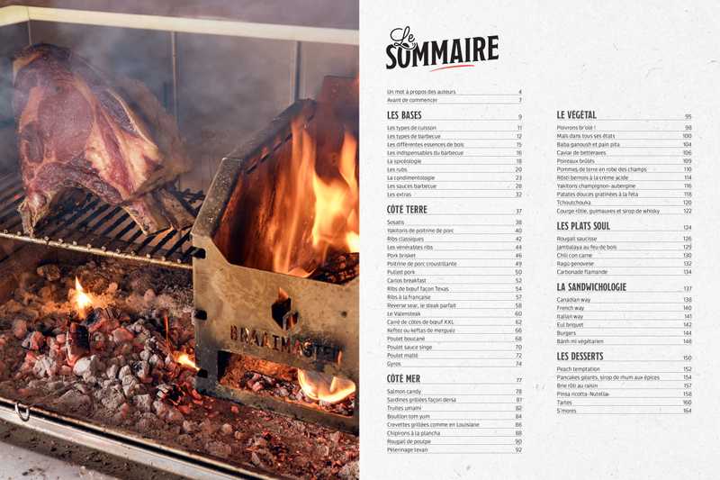 Ribs de porc cuits, carré de côtes de bœuf XXL, pulled pork, rougail saucisse, poulet boucané, mais aussi truites umami, chipirons à la plancha, yakitoris champignon-aubergine, burgers…
