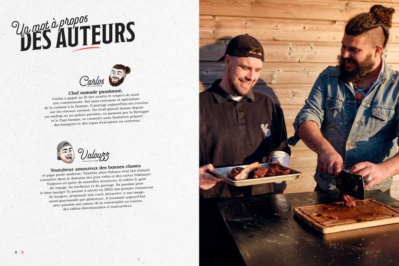 Embarque avec Valouzz et chef Carlos, le duo le plus improbable du barbecue français ! Avec eux, apprends à maîtriser les rubs (marinades sèches à appliquer sur la viande) pour obtenir un savoureux « bark », la fameuse croûte de la viande cuite au barbecue, puis accompagne tes plats avec les condiments maison ou les « extras » – sirop de whisky, caramel de bière salé, beurre fumé. Tu verras, ça change tout !